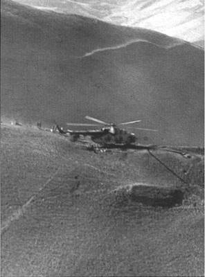 Дальний пост охранения, высокогорье. Восьмёрка садится на крохотный пятачок. Пыль бубликом крутится вокруг винта. Вертолёт почти не видно. Но вот пыль опадает, вертолёт спокойно молотит лопастями на малом шаге, суетятся солдаты разгрузочной команды. Доставка груза, обычное дело оказывается в этих краях…