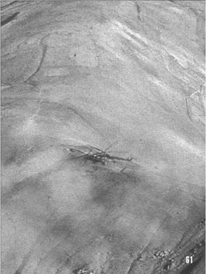 Разгрузка «восьмёрки» затянулась, у нас топливо на исходе, высота и вес позволяют, решаемся тоже сесть. Находим ровный участок на берегу реки. Заходим, внезапно теряем видимость. Пыль набрасывается на нас как кобра, резко и без предупреждения. Спасибо машине, выручила. Сами виноваты, не подумали, что пыль сюда могла нанести река…