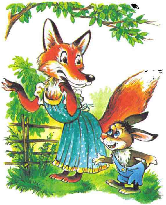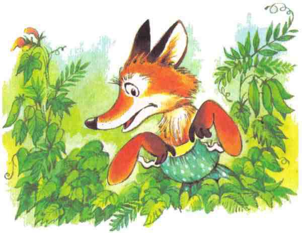 Поблагодарил медведь зайца. Кустик горошка сорвал ему. Увидела Лиса зайца с горохом, кинулась к нему.