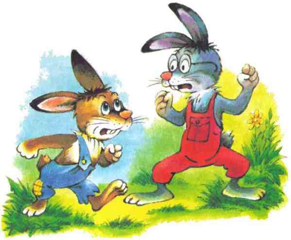 И заспорили зайцы. А от спора до драки — одна оплеуха. Ахнул Рваный Бок ладонью по щеке Пушка, а тот ему ахнул — и понеслось. Колотят зайцы друг друга, пускают серый пух по ветру, кричат: